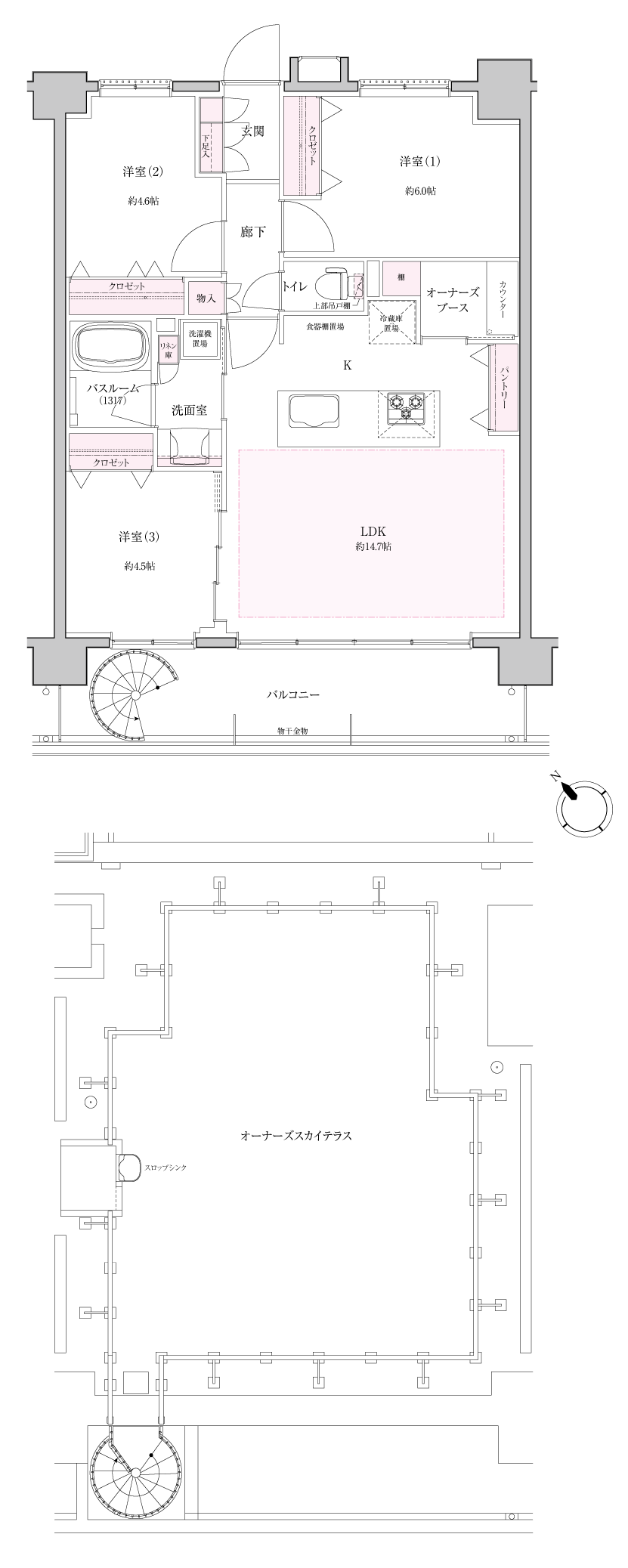 - オーナーズスカイテラス面積/39.04㎡(約11.80坪)